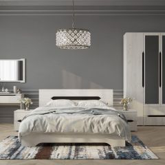 Для создания оригинального интерьера подходят наборы в необычном исполнении, с применением блестящих и прозрачных поверхностей, фотопечатью, резьбой.